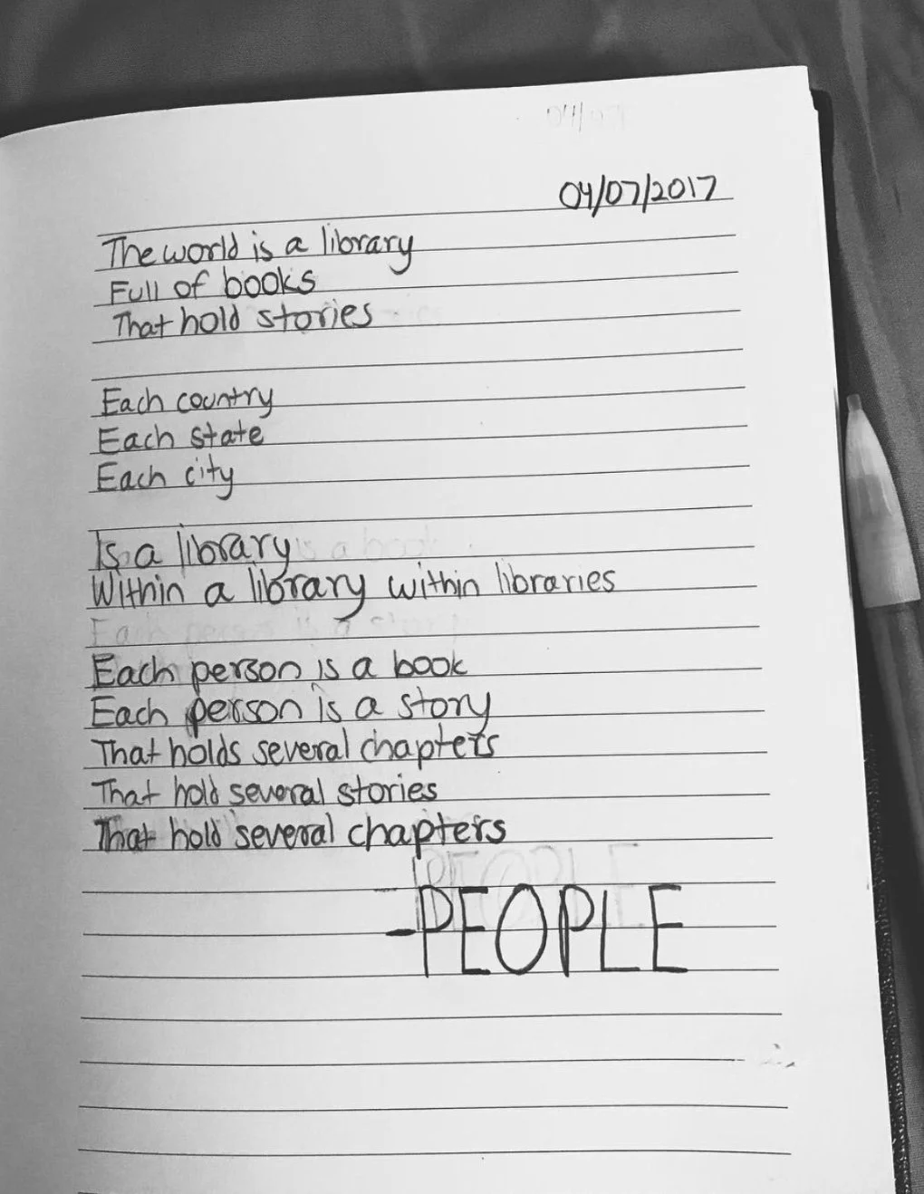 Often when we go through our day to day lives, we forget about how magical and mysterious our existence-- and the existence of whoever or whatever else-- really are. I don’t know about you, but sometimes I’ll wake up in the middle of the night and be jolted by sudden amazement and wonder about a specific existential thought. Or I’ll be working at my bookstore job and then have a moment where I pause and am like “wait, I’m real? I’m here? I work at a bookstore in Texas?” Other times I’ll be in awe of how I ended up in Y place after being in X place, and at the passing of time and and the ways in which my life has changed across it.