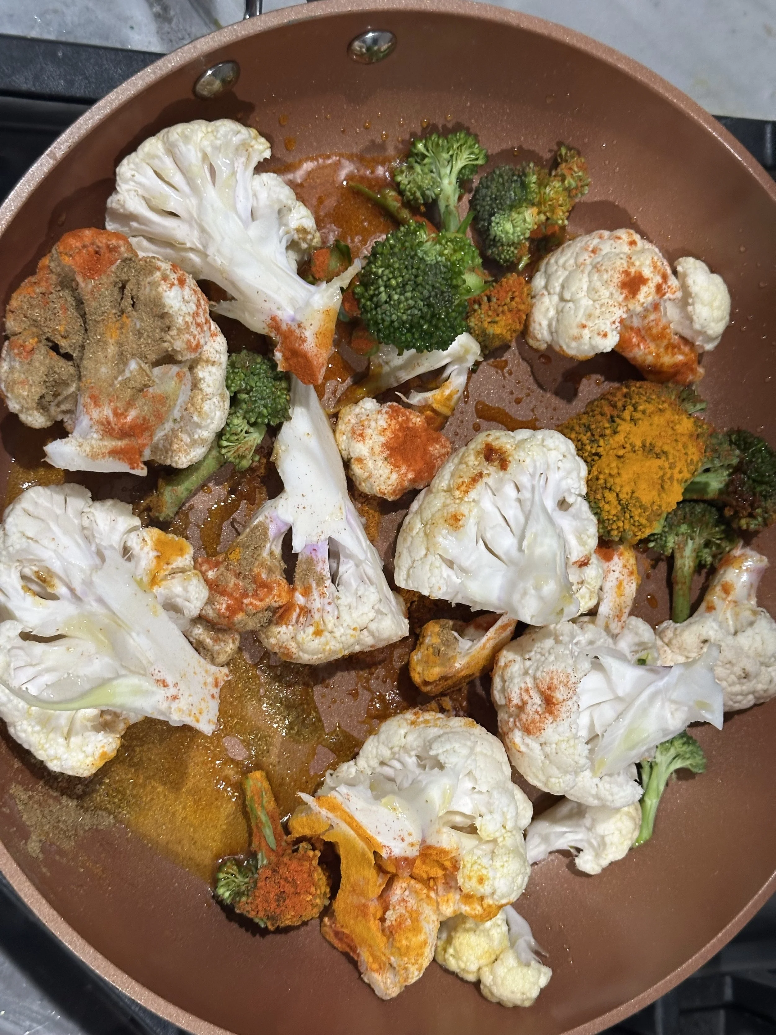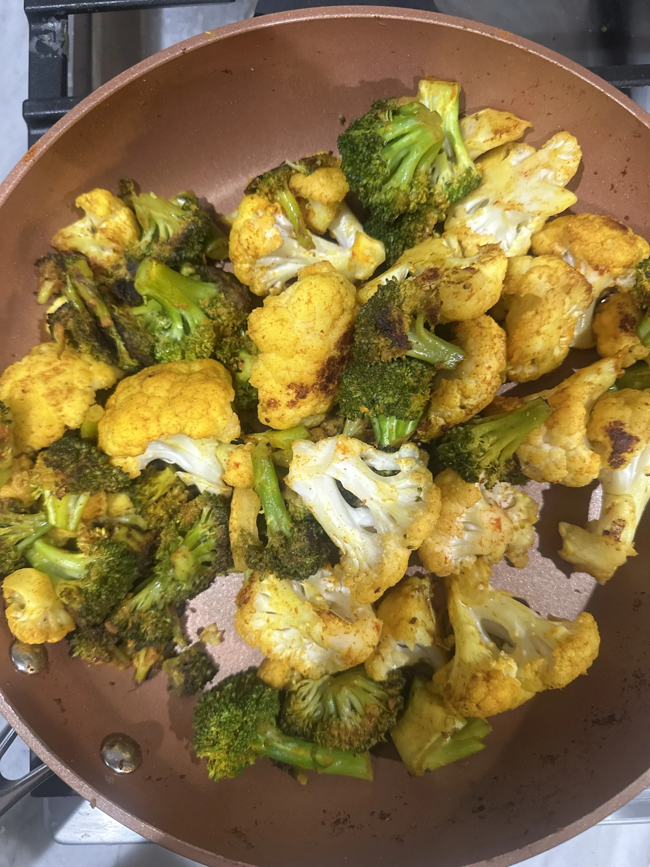 It is past midnight (it’s midnight, March 18 when I wrote this originally so the night of 3/17) , and I’m playing “Krishno” by Habib Wahid & Kaya while spicy cauliflower and broccoli are simmering on the stove. I’ve not had much faith in myself when it came to cooking food that actually ended up tasting good until recently; my mom was visiting Texas and she showed me how to mix ingredients from local desi markets into my food to make it tasty. She initially showed me how to work with salmon— then I video called her the week after to learn how to prepare tuna like her and Dadu, my paternal grandma, my only living grandparent since the past decade, have made for me several times, spicy and flavorful. Of course they’d made several other dishes for me throughout my lifetime, and a greater variety when I actually used to eat meat prior to me becoming pescatarian. My Minu Fupu, whom I also refer to as Choto Fupu, or my “small” (younger) paternal aunt had also cooked me the yummiest, deliciously spicy cauliflower with aloo, or potatoes, earlier this year that made me fall in love with vegetables even deeper than I had before— and she, like her mother, had made me that delicious tuna and aloo dish before, too. My Anjum Chachi (paternal uncle’s wife) and cousin Nuha will also bake flavorful salmon for me often, and my younger cousin Nura will peel potatoes prior to them being seasoned and cooked. When I was at Sprouts earlier tonight (it is past midnight, as I’ve mentioned earlier) to get aforementioned cauliflower and broccoli for tonight’s cooking, I remember thinking how funny it was that I had used to hate having to eat my vegetables. Now, I prefer and love vegetables— assuming that they’re yummy and flavorful and soft. I hate hard vegetables. It wasn’t that I had actually hated them— I just didn’t know how yummy they could be when cooked desi style. The first discovery of my love for vegetables was in high school when I had first tried spicy mixed vegetables that we had catered from a fellow Bangladeshi Aunty in our community.